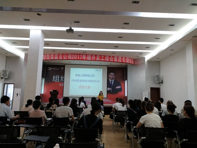2017年5月13-14日,由成都市倍垒职业经理培训学校为人保财险荣昌支公司实施2天的《职业形象塑造与商务礼仪》和《团队拓展训练》内训课程圆满结束,该公司共有50余人参加了此次培训课程。